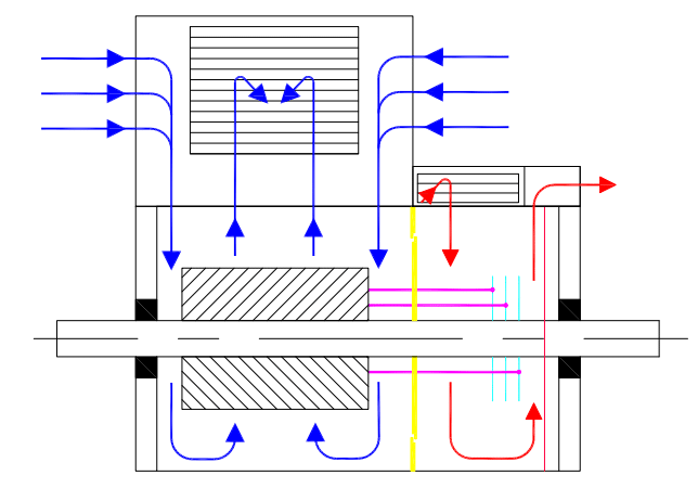 Principio de enfriamiento para motores asíncronos de anillos deslizantes de circuito abierto de ventilación IC 01.