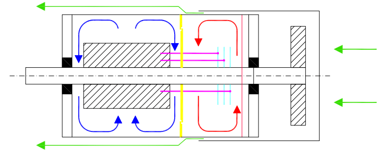 Los motores asíncronos de anillo deslizante en la clase de enfriamiento IC 411, generalmente tienen ventiladores externos independientes de la rotación. El circuito de aire interno también es independiente de la rotación.